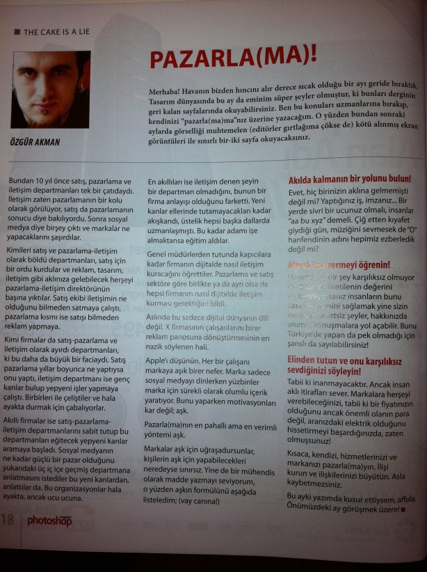 Geçtiğimiz ay Photoshop magazin’de dijital pazarlama ve iletişim üzerinde yazmaya başladım. İlk yazım aşağıda;